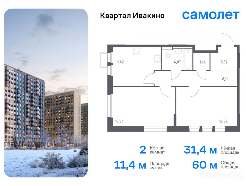 Продается двухкомнатная квартира в новостройке ЖК «Квартал Ивакино» по адресу Московская область, Химки городской округ, Химки, Квартал Ивакино, корп. 4. Общая площадь квартиры - 60 кв. м. Тип проекта, по которому построен дом — Монолитно-кирпичный, компания-застройщик — ООО СЗ «Самолет-Олимп», Группа «Самолет». Стоимость квартиры — 20 718 182 руб. Способы оплаты можно уточнить у продавца. Более подробная информация по телефону.