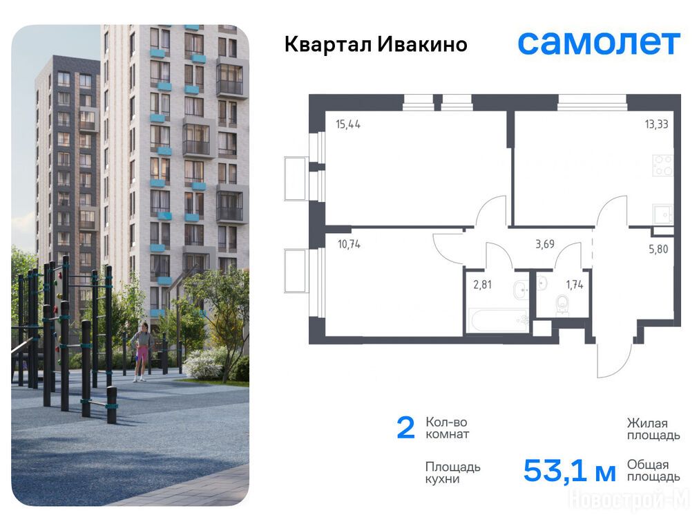 Продается двухкомнатная квартира в новостройке ЖК «Квартал Ивакино» по адресу Московская область, Химки городской округ, Химки, Квартал Ивакино, корп. 3. Общая площадь квартиры - 53.1 кв. м. Тип проекта, по которому построен дом — Монолитно-кирпичный, компания-застройщик — ООО СЗ «Самолет-Олимп», Группа «Самолет». Стоимость квартиры — 14 525 790 руб. Способы оплаты можно уточнить у продавца. Более подробная информация по телефону.