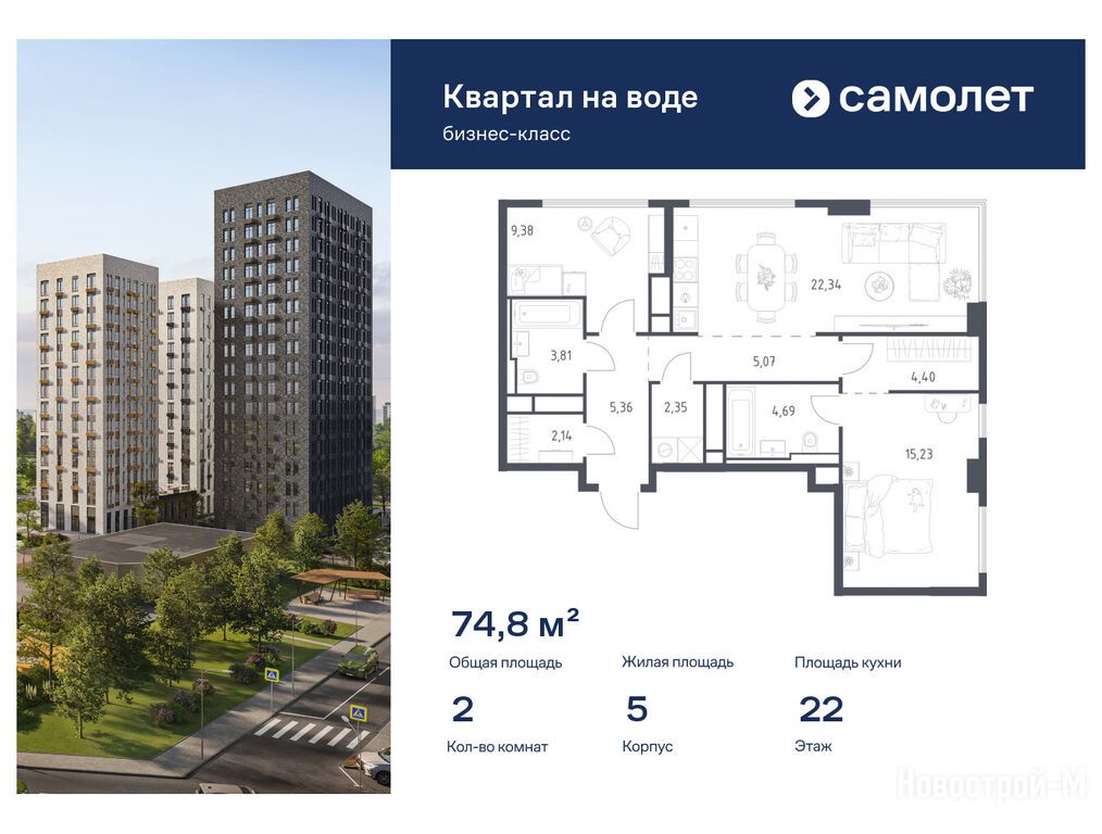 Продается двухкомнатная квартира в новостройке ЖК «Квартал на воде» по адресу Москва, ЮВАО, Печатники, ул. Шоссейная, д. 90. Общая площадь квартиры - 74.77 кв. м. Тип проекта, по которому построен дом — Монолит, компания-застройщик — Группа «Самолет», АО СЗ «Заречье». Стоимость квартиры — 31 454 468 руб. Способы оплаты можно уточнить у продавца. Срок сдачи — 4 квартал 2028. Более подробная информация по телефону.