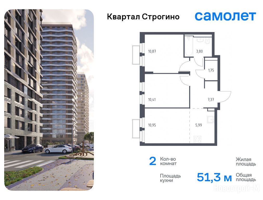 Продается двухкомнатная квартира в новостройке ЖК «Квартал Строгино» по адресу Московская область, Красногорск городской округ, Красногорск, ЖК «Квартал Строгино», корп.2. Общая площадь квартиры - 51.26 кв. м. Тип проекта, по которому построен дом — Монолитно-кирпичный, компания-застройщик — ООО СЗ «Самолет-Строгино Парк», Группа «Самолет». Стоимость квартиры — 20 636 405 руб. Способы оплаты можно уточнить у продавца. Срок сдачи — 2 квартал 2026. Более подробная информация по телефону.