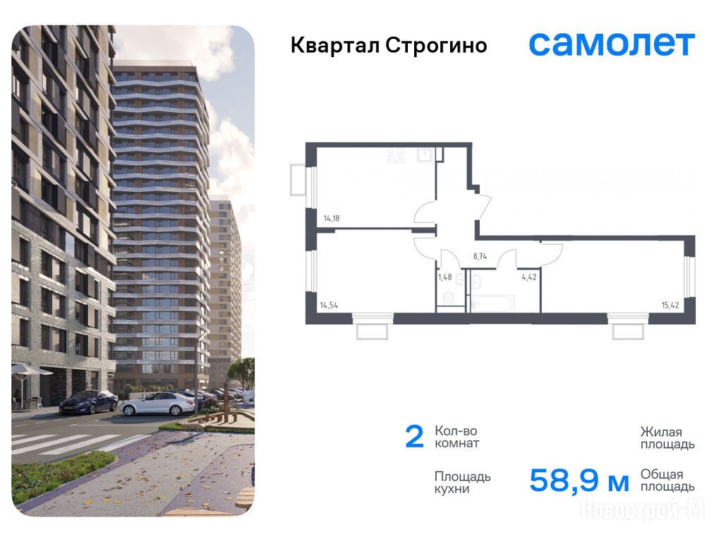 Продается двухкомнатная квартира в новостройке ЖК «Квартал Строгино» по адресу Московская область, Красногорск городской округ, Красногорск, ЖК «Квартал Строгино», корп.2. Общая площадь квартиры - 58.88 кв. м. Тип проекта, по которому построен дом — Монолитно-кирпичный, компания-застройщик — ООО СЗ «Самолет-Строгино Парк», Группа «Самолет». Стоимость квартиры — 22 005 975 руб. Способы оплаты можно уточнить у продавца. Срок сдачи — 2 квартал 2026. Более подробная информация по телефону.