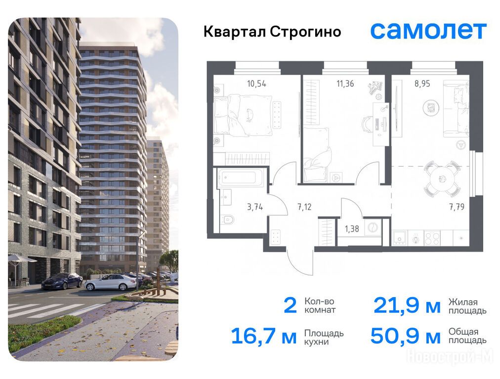 Продается двухкомнатная квартира в новостройке ЖК «Квартал Строгино» по адресу Московская область, Красногорск городской округ, Красногорск, ЖК «Квартал Строгино», корп.1. Общая площадь квартиры - 50.88 кв. м. Тип проекта, по которому построен дом — Монолитно-кирпичный, компания-застройщик — ООО СЗ «Самолет-Строгино Парк», Группа «Самолет». Стоимость квартиры — 16 853 668 руб. Способы оплаты можно уточнить у продавца. Срок сдачи — 2 квартал 2026. Более подробная информация по телефону.