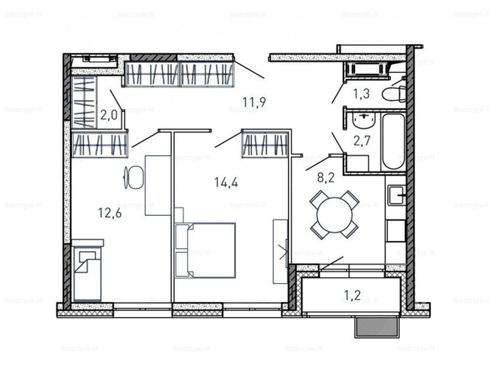 2-комн. квартира 52,70 м2 14 012 930