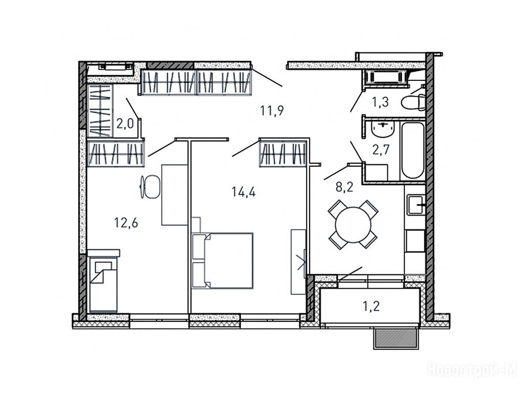 2-комн. квартира 54,10 м2 10 473 760