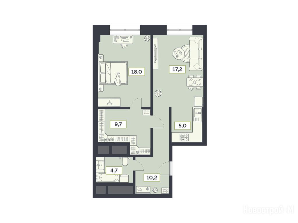 Ищем двухкомнатную квартиру для родителей, а тут они от 60 квадратов, приятно удивлены простором, плюс высокие потолки, интересная, необычная форма комнат, бизнес класс новостройки, скоро сдача, думаю, что остановимся на Лайме