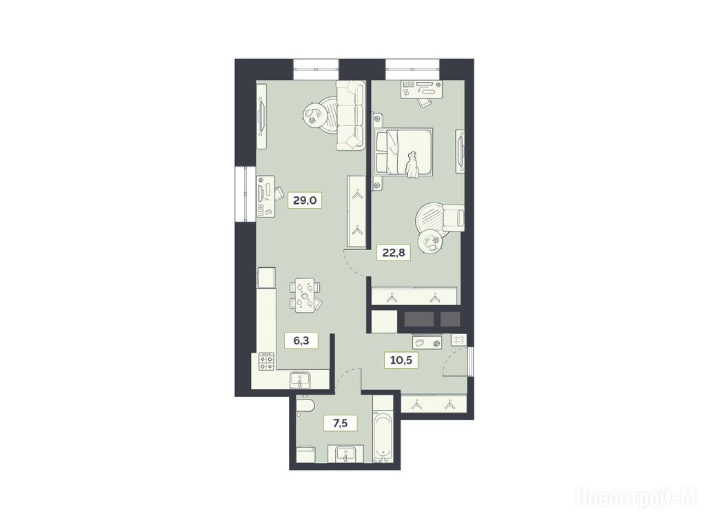 Ищем двухкомнатную квартиру для родителей, а тут они от 60 квадратов, приятно удивлены простором, плюс высокие потолки, интересная, необычная форма комнат, бизнес класс новостройки, скоро сдача, думаю, что остановимся на Лайме