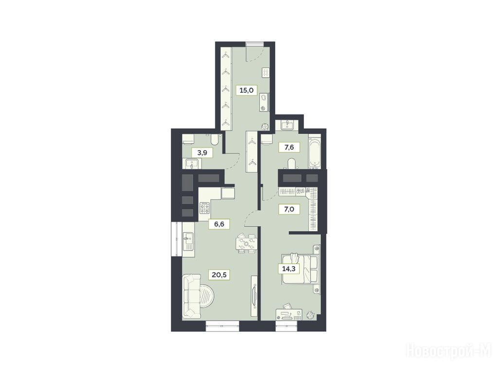 Ищем двухкомнатную квартиру для родителей, а тут они от 60 квадратов, приятно удивлены простором, плюс высокие потолки, интересная, необычная форма комнат, бизнес класс новостройки, скоро сдача, думаю, что остановимся на Лайме