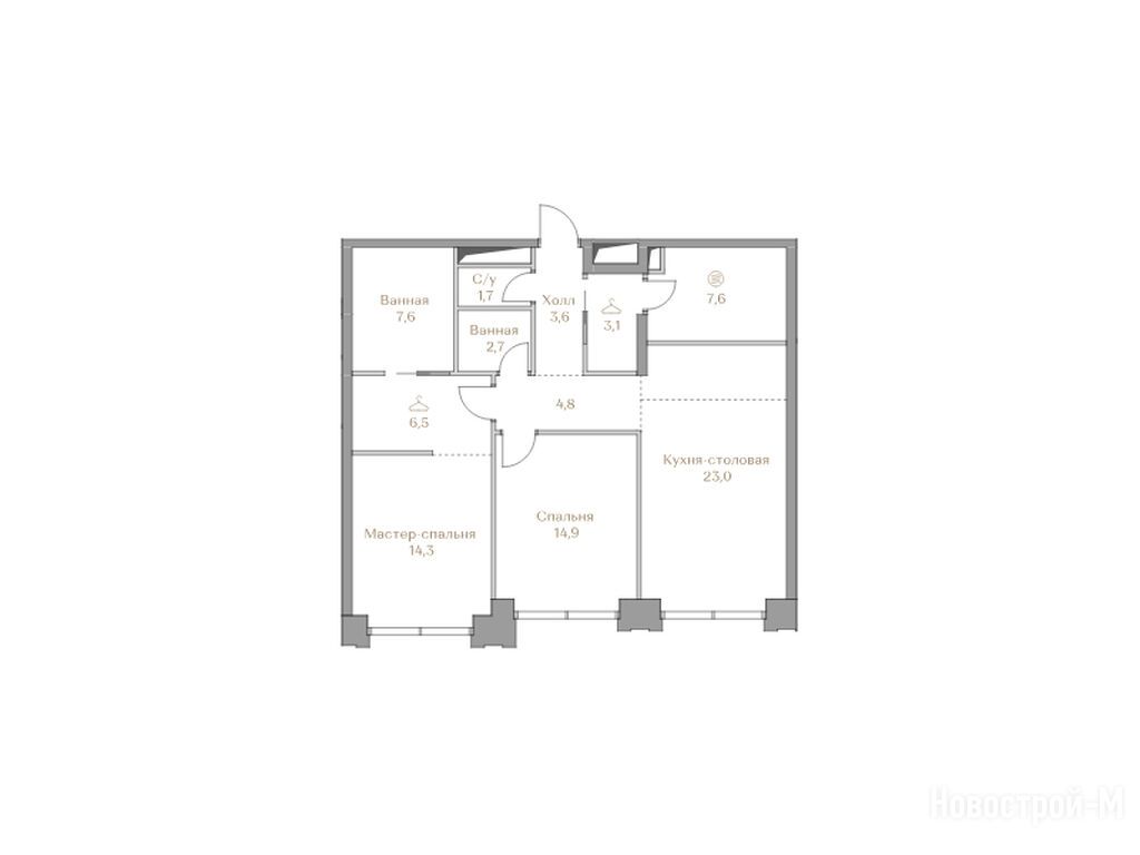 1. Большой пул самых востребованных семейных квартир с двумя-тремя спальнями.