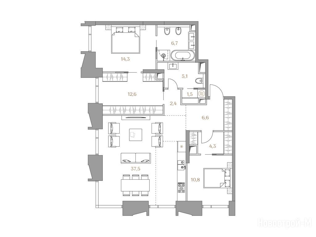 1. Большой пул самых востребованных семейных квартир с двумя-тремя спальнями.