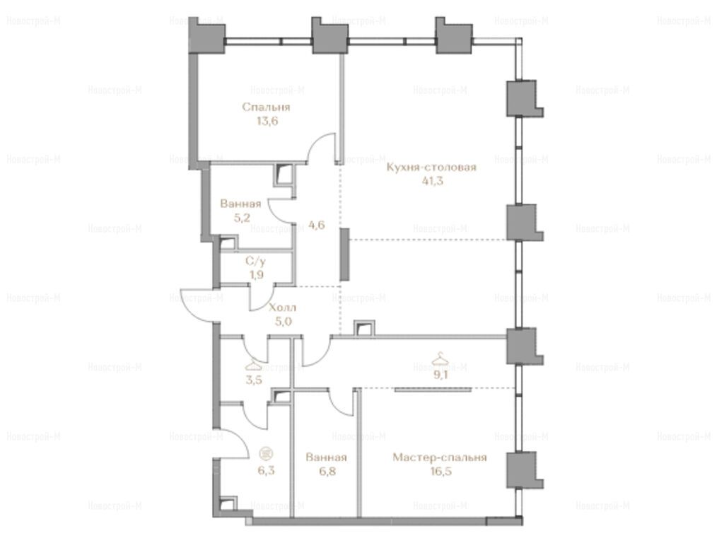 1. Большой пул самых востребованных семейных квартир с двумя-тремя спальнями.