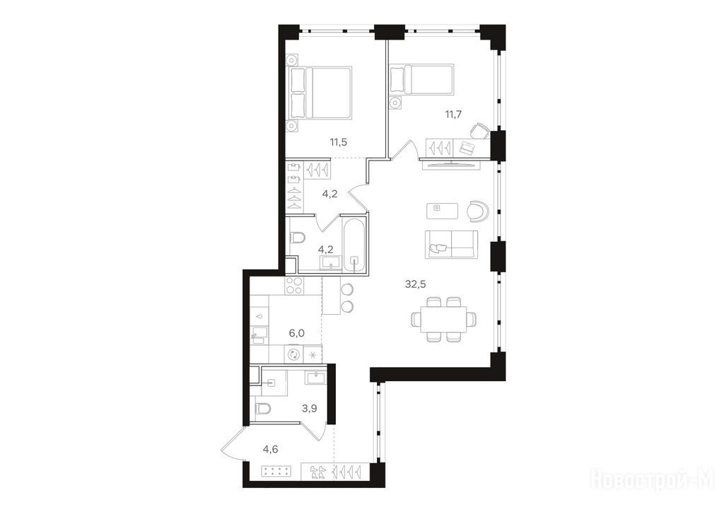 Трешки супер, есть окно в гардеробной, мастер-спальня удалена максимально от всех комнат, кухня-гостиная большая, можно зонировать спокойно. Смутил только длинный коридор-труба на 8 квадратов, пока не очень представляю как это будет выглядеть на деле.