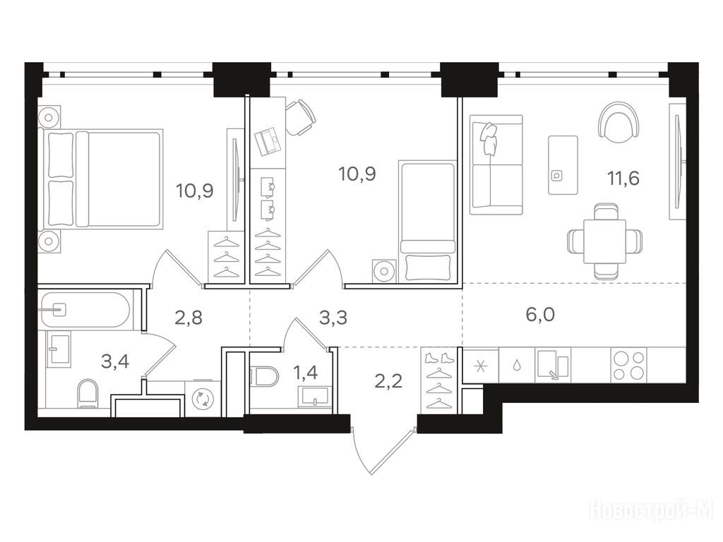 Трешки супер, есть окно в гардеробной, мастер-спальня удалена максимально от всех комнат, кухня-гостиная большая, можно зонировать спокойно. Смутил только длинный коридор-труба на 8 квадратов, пока не очень представляю как это будет выглядеть на деле.