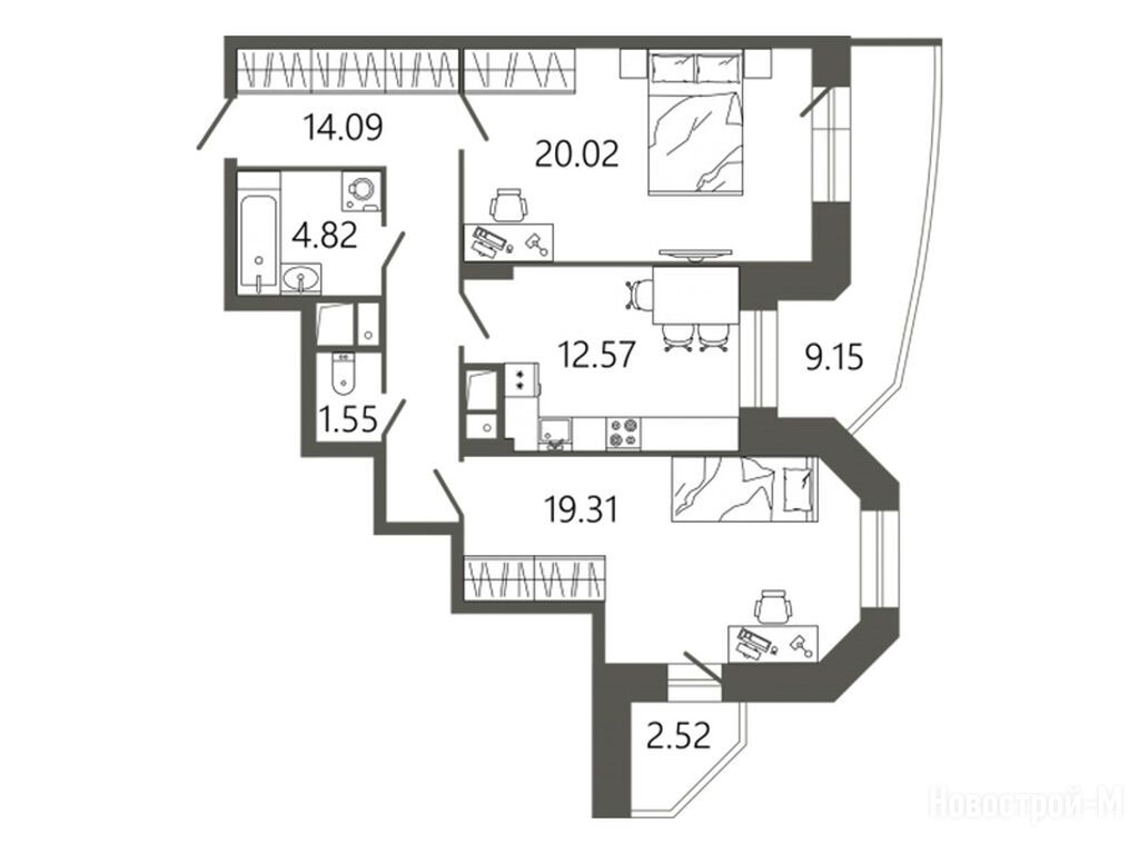 3-комн. квартира 89,73 м2 12 476 956