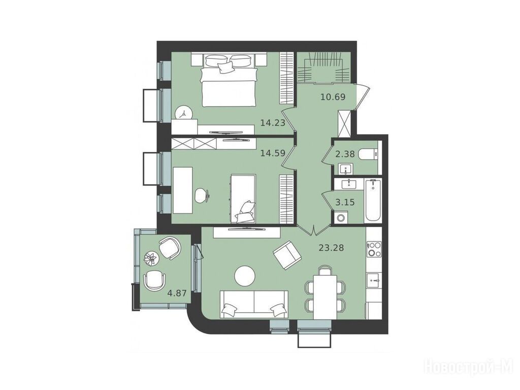 Ждём квартиру, взяли двушку в Мишино - 2. У нас семья с детьми, поэтому важно было купить квартиру в безопасном районе. Чтоб школа и садик были рядом, территория под охраной. Большой плюс - это жизнь рядом с лесопарком. Сама квартира будет с просторной планировкой, большая кухня гостинная, двухкамерные стеклопакеты, не пропускают шум с улицы. Большие остекленные лоджии, где можно будет затусить компанией.
