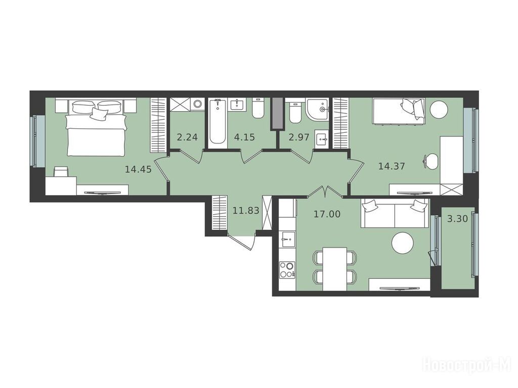 Ждём квартиру, взяли двушку в Мишино - 2. У нас семья с детьми, поэтому важно было купить квартиру в безопасном районе. Чтоб школа и садик были рядом, территория под охраной. Большой плюс - это жизнь рядом с лесопарком. Сама квартира будет с просторной планировкой, большая кухня гостинная, двухкамерные стеклопакеты, не пропускают шум с улицы. Большие остекленные лоджии, где можно будет затусить компанией.