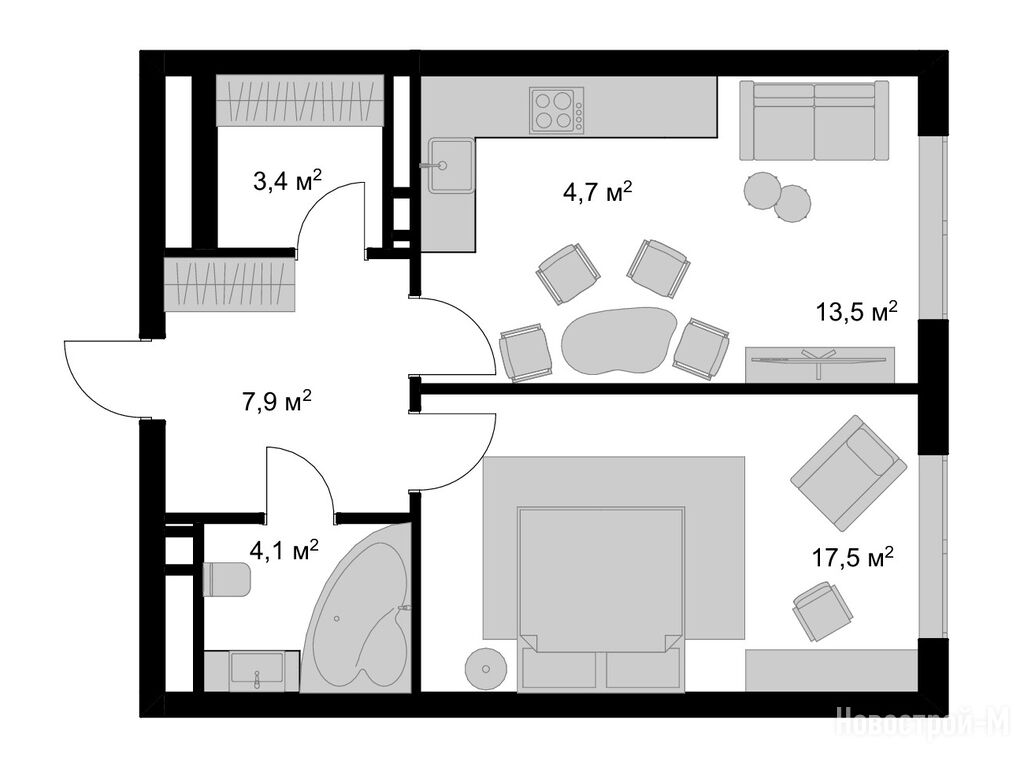 студия 29,60 м2 7 844 000