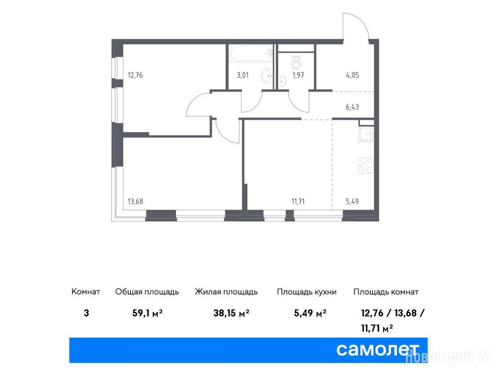 Продается двухкомнатная квартира в новостройке ЖК «Молжаниново» по адресу Москва, САО, Молжаниновский, ул. Молжаниновская, корп. 6. Общая площадь квартиры - 59.1 кв. м. Тип проекта, по которому построен дом — Монолитно-кирпичный, компания-застройщик — ООО СЗ «Самолет-Молжаниново», Группа «Самолет». Стоимость квартиры — 15 955 793 руб. Способы оплаты можно уточнить у продавца. Срок сдачи — 3 квартал 2026. Более подробная информация по телефону.