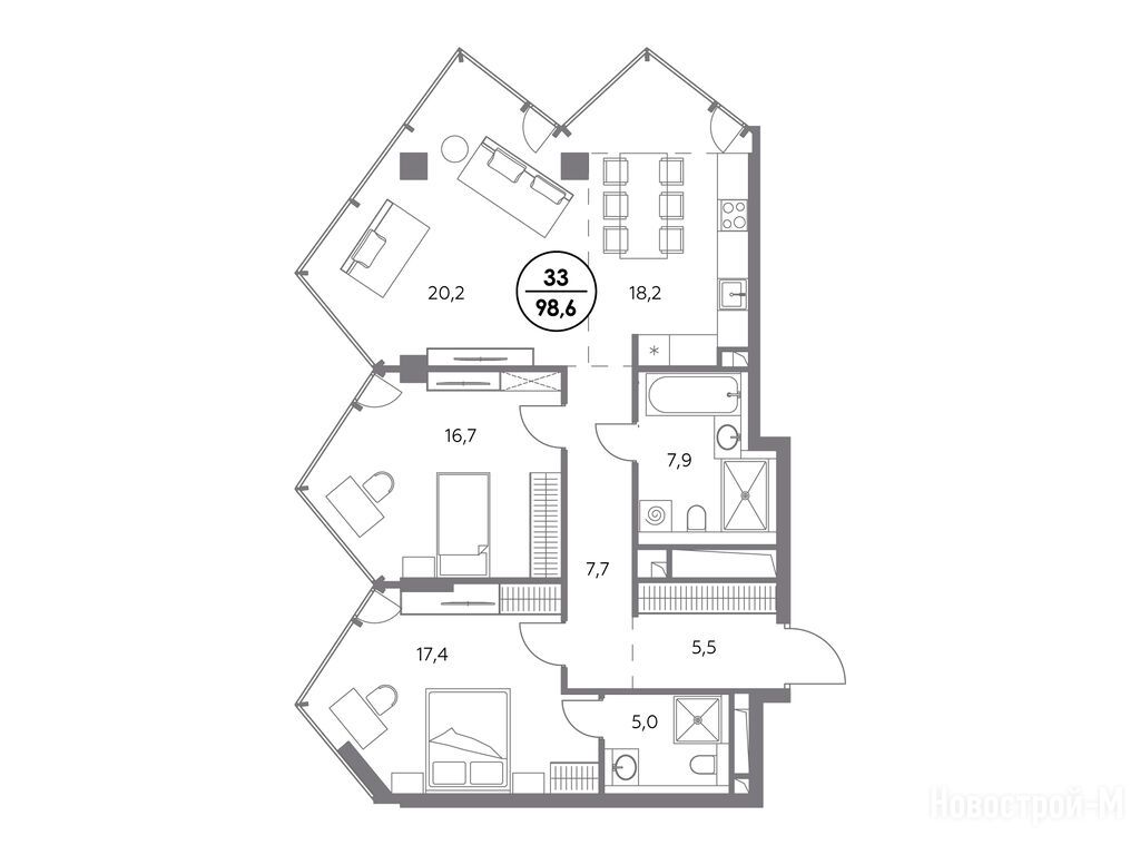 Выбрали квартиру в более корпусе на 7 этажей с мастер-спальней. Никогда не понимал этих любителей верхотуры и 30ых этажей. Хорошо, есть новые проекты с вменяемой этажностью. Вид у нас во двор, само место тихое, то что надо,