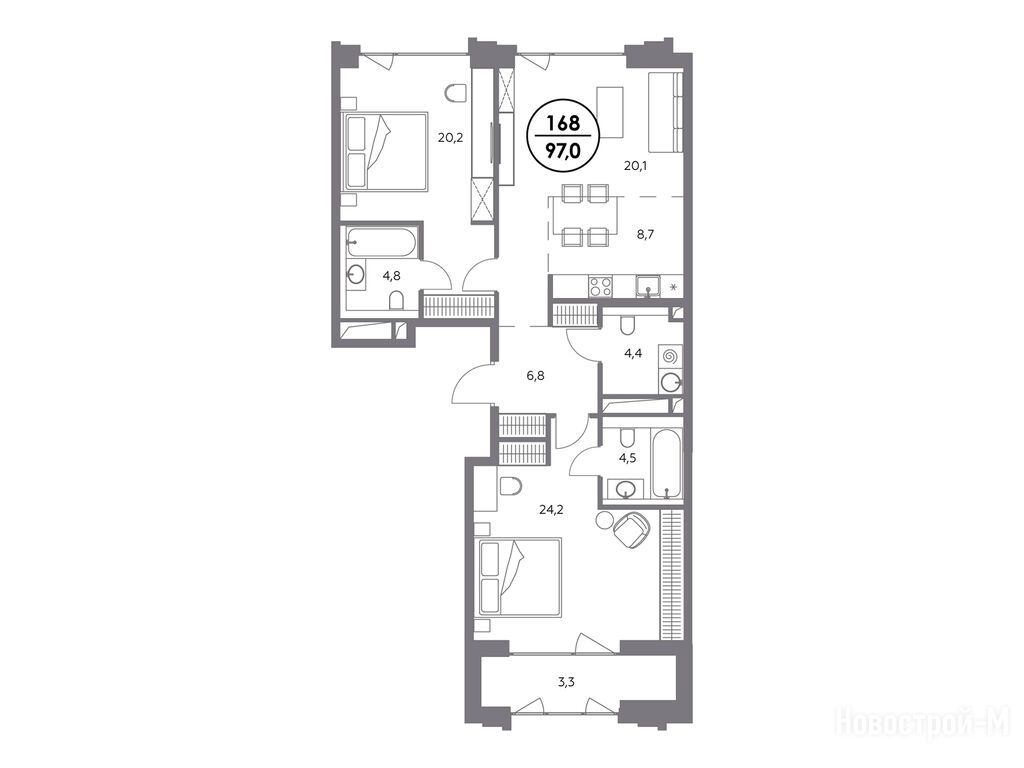 Выбрали квартиру в более корпусе на 7 этажей с мастер-спальней. Никогда не понимал этих любителей верхотуры и 30ых этажей. Хорошо, есть новые проекты с вменяемой этажностью. Вид у нас во двор, само место тихое, то что надо,