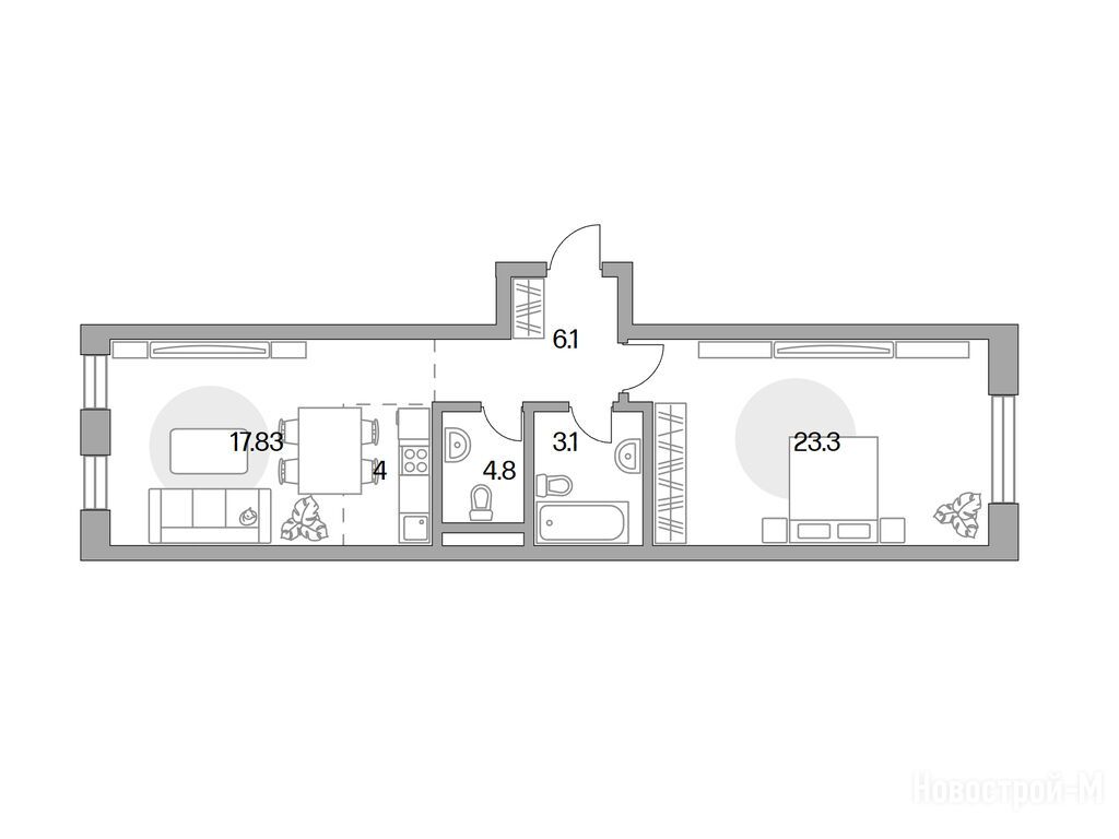 Уютное внутреннее пространство, светлые помещения и удобные планировки, всё выглядит продуманно. Конечно, у меня возникли вопросы относительно отделки: здесь ее вообще не предусмотрено. Это может быть как плюсом, так и минусом. С одной стороны, можно реализовать свои идеи. С другой - придется потратить время и силы на ремонты.