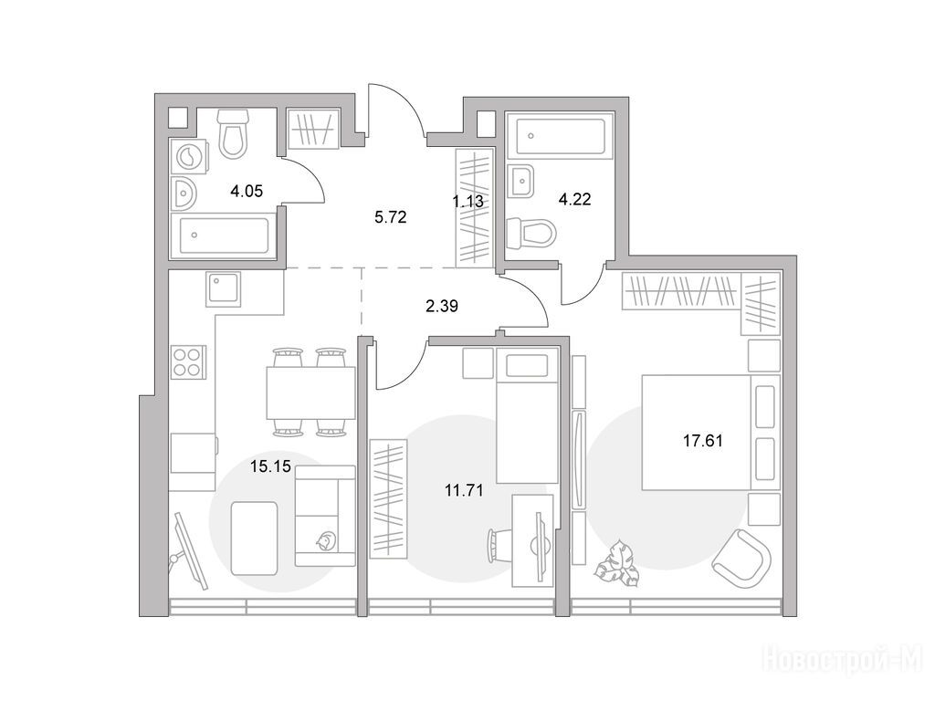 Данная квартира является лидером продаж среди двухкомнатных квартир в ЖК «Мнёвники от Гранель» по данным Росреестра
