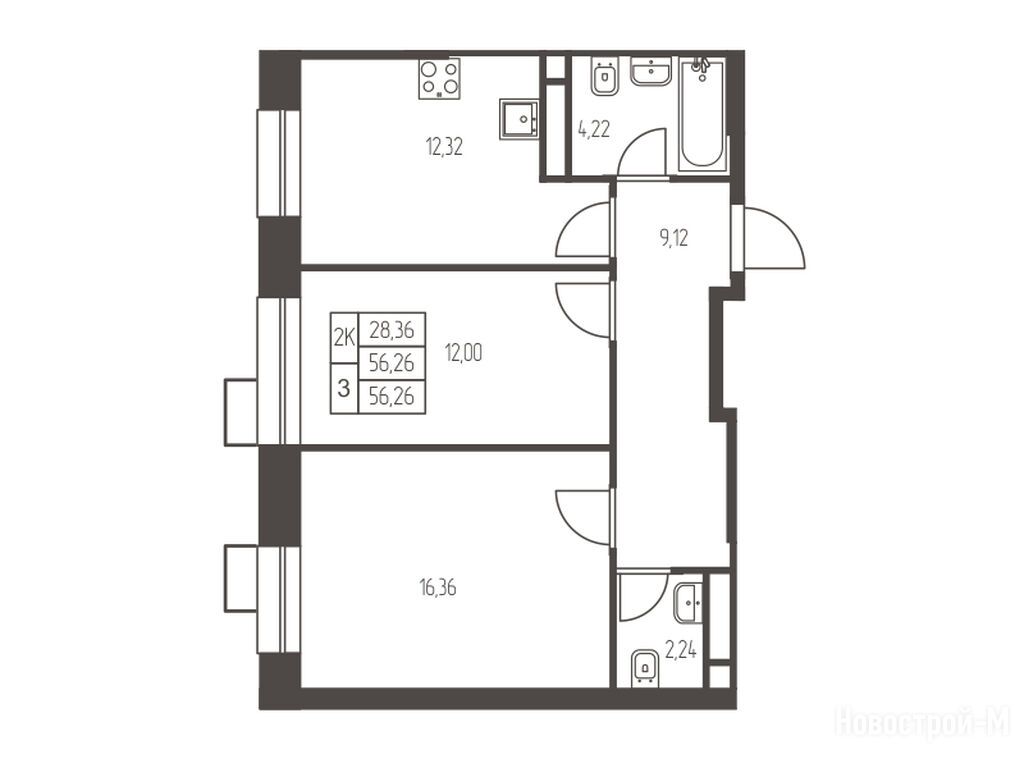 Продается двухкомнатная квартира в новостройке ЖК «Новая Ивантеевка» по адресу Московская область, Ивантеевка городской округ, Ивантеевка, ул. Заводская, 2 очередь, секция 2, 3, подъезд 1. Общая площадь квартиры - 56.3 кв. м. Тип проекта, по которому построен дом — Монолитно-кирпичный, компания-застройщик — Профи-Инвест, ООО СЗ Заводская-1. Стоимость квартиры — 8 781 342 руб. Способы оплаты можно уточнить у продавца. Срок сдачи — 4 квартал 2026. Более подробная информация по телефону.