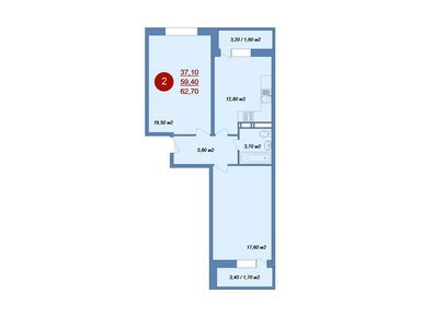 2-комн. квартира, 62.70 м2, 5 этаж