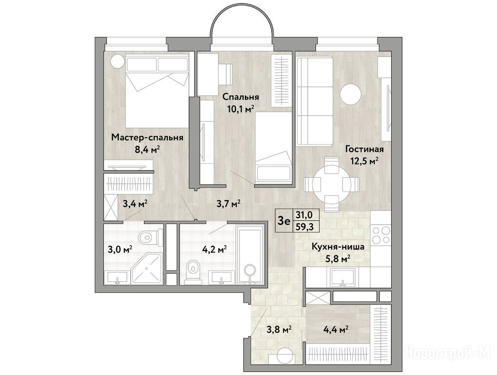 Данная квартира является лидером продаж среди двухкомнатных квартир в ЖК «Новые Смыслы» по данным Росреестра