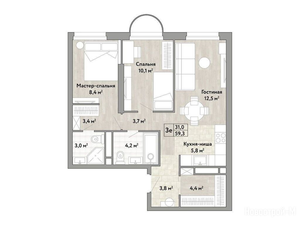Данная квартира является лидером продаж среди двухкомнатных квартир в ЖК «Новые Смыслы» по данным Росреестра