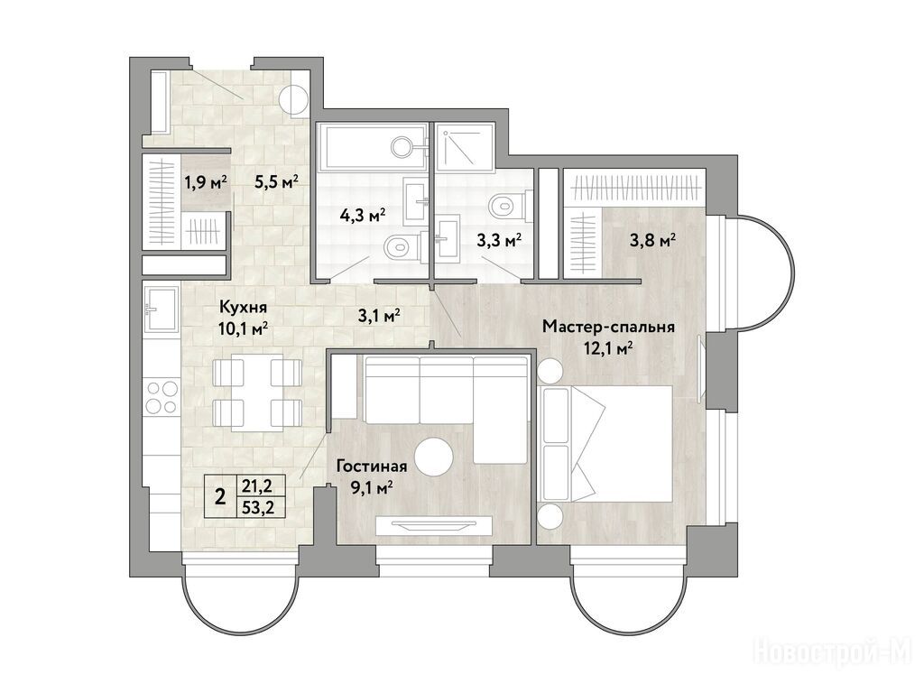 Данная квартира является лидером продаж среди двухкомнатных квартир в ЖК «Новые Смыслы» по данным Росреестра