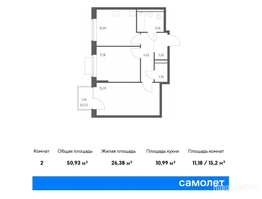 Продается двухкомнатная квартира в новостройке ЖК «Новое Видное» по адресу Московская область, Ленинский городской округ, Горки Ленинские Г/П, ЖК «Новое Видное», корп. 18.1. Общая площадь квартиры - 50.93 кв. м. Тип проекта, по которому построен дом — Монолитно-кирпичный, компания-застройщик — ООО СЗ «Самолет-Калиновка», Группа «Самолет». Стоимость квартиры — 8 825 863 руб. Способы оплаты можно уточнить у продавца. Срок сдачи — 4 квартал 2026. Более подробная информация по телефону.