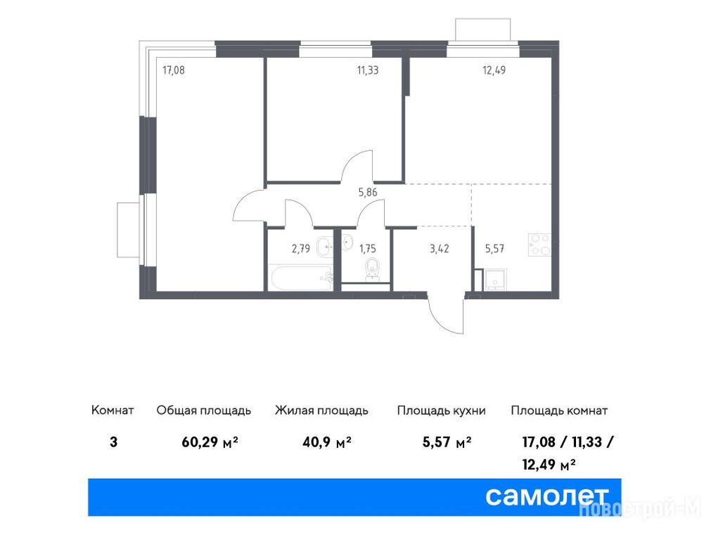 Продается двухкомнатная квартира в новостройке ЖК «Новое Видное» по адресу Московская область, Ленинский городской округ, Горки Ленинские Г/П, ЖК «Новое Видное», корп. 14.1. Общая площадь квартиры - 60.29 кв. м. Тип проекта, по которому построен дом — Монолитно-кирпичный, компания-застройщик — ООО СЗ «Самолет-Калиновка», Группа «Самолет». Стоимость квартиры — 9 988 451 руб. Способы оплаты можно уточнить у продавца. Срок сдачи — 4 квартал 2026. Более подробная информация по телефону.