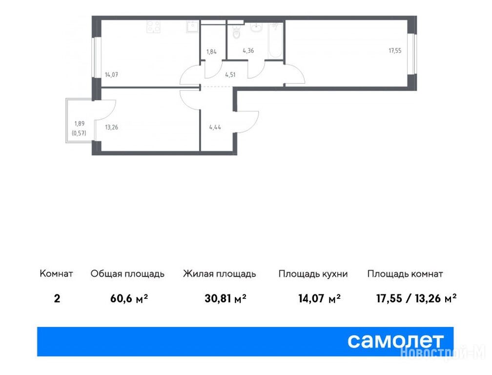 Продается двухкомнатная квартира в новостройке ЖК «Новое Видное» по адресу Московская область, Ленинский городской округ, Горки Ленинские Г/П, ЖК «Новое Видное», корп. 18.2. Общая площадь квартиры - 60.6 кв. м. Тип проекта, по которому построен дом — Монолитно-кирпичный, компания-застройщик — ООО СЗ «Самолет-Калиновка», Группа «Самолет». Стоимость квартиры — 10 597 546 руб. Способы оплаты можно уточнить у продавца. Срок сдачи — 4 квартал 2026. Более подробная информация по телефону.