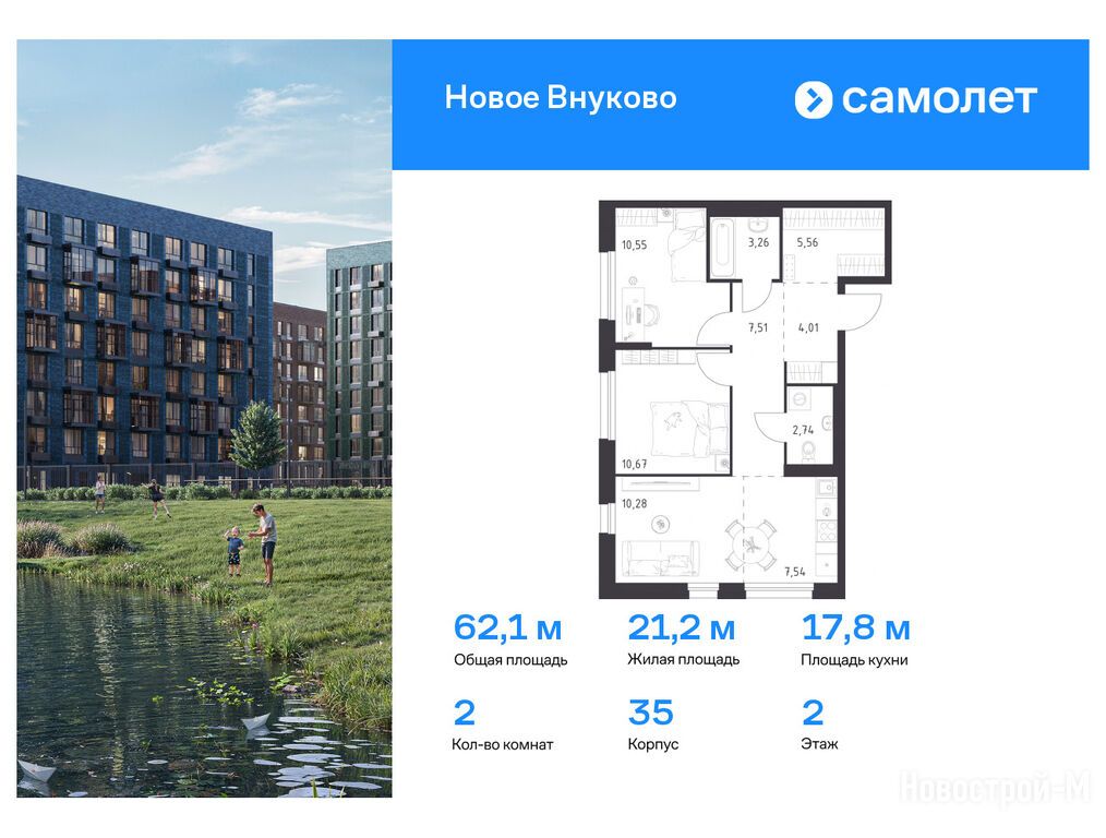 Продается двухкомнатная квартира в новостройке ЖК «Новое Внуково» по адресу Москва, ТиНАО, Новомосковский АО, Кокошкино С/П, Кокошкино пос., д. Санино, корп. 35. Общая площадь квартиры - 62.12 кв. м. Тип проекта, по которому построен дом — Монолитно-кирпичный, компания-застройщик — ООО СЗ «Санино 1», Группа «Самолет». Стоимость квартиры — 13 649 565 руб. Способы оплаты можно уточнить у продавца. Срок сдачи — 4 квартал 2027. Более подробная информация по телефону.