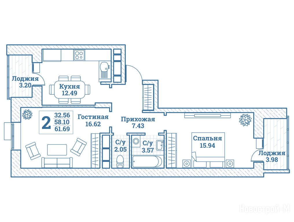 Продается двухкомнатная квартира в новостройке ЖК «Новоград Монино» по адресу Московская область, Щелковский район, Монино Г/П, ул. Генерала Ковачевича, корп. 16. Общая площадь квартиры - 61.69 кв. м. Тип проекта, по которому построен дом — Монолитно-кирпичный, компания-застройщик — СПЕЦИАЛИЗИРОВАННЫЙ ЗАСТРОЙЩИК «АВЕРУС». Стоимость квартиры — 8 131 390 руб. Способы оплаты можно уточнить у продавца. Срок сдачи — 1 квартал 2027. Более подробная информация по телефону.
