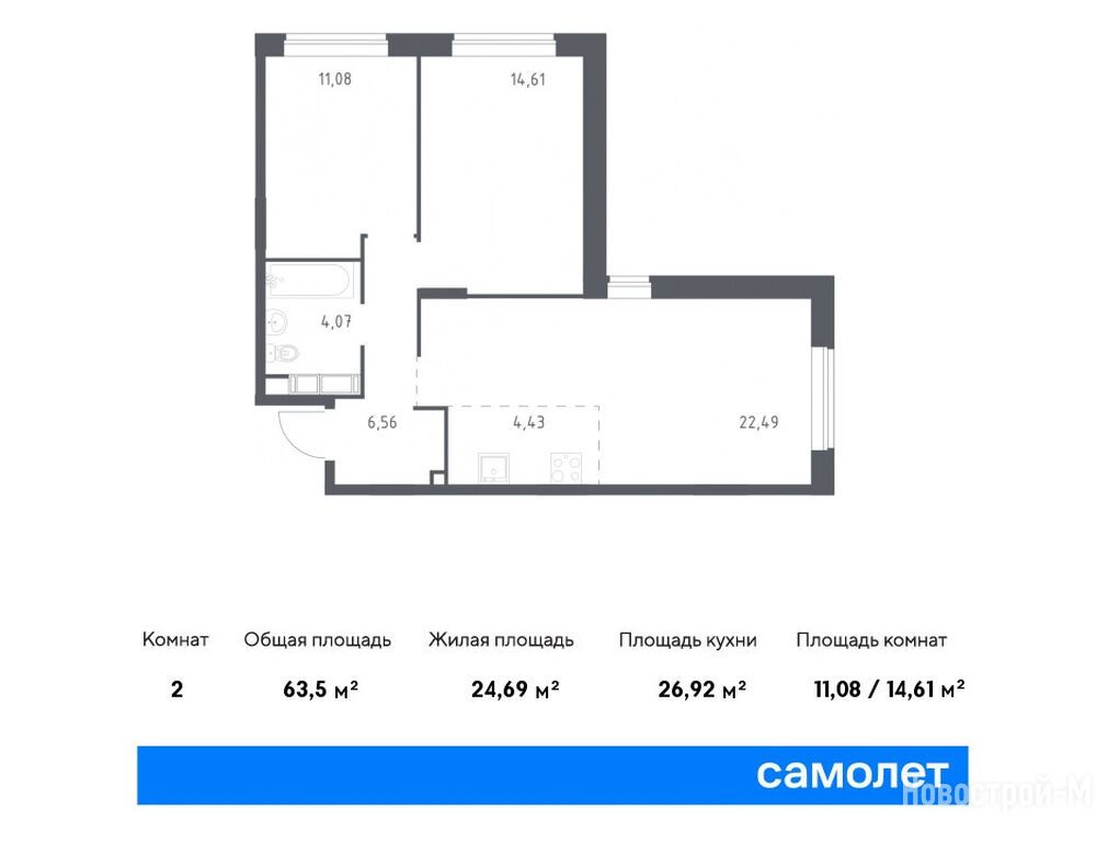 Продается двухкомнатная квартира в новостройке ЖК «Новоград Павлино» по адресу Московская область, Балашиха городской округ, Балашиха, мкр. Новое Павлино, корп. 33. Общая площадь квартиры - 63.5 кв. м. Тип проекта, по которому построен дом — Монолитно-кирпичный, компания-застройщик — Группа «Самолет», ООО СЗ «МИЦ-Инвестрой». Стоимость квартиры — 13 039 344 руб. Способы оплаты можно уточнить у продавца. Более подробная информация по телефону.