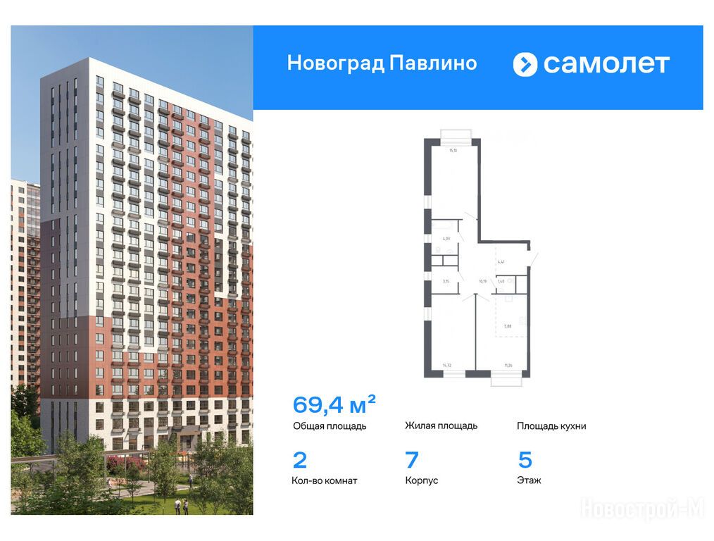 Продается двухкомнатная квартира в новостройке ЖК «Новоград Павлино» по адресу Московская область, Балашиха городской округ, Балашиха, ул. Романычева, д. 4. Общая площадь квартиры - 69.4 кв. м. Тип проекта, по которому построен дом — Монолитно-кирпичный, компания-застройщик — Группа «Самолет», ООО СЗ «МИЦ-Инвестрой». Стоимость квартиры — 14 539 161 руб. Способы оплаты можно уточнить у продавца. Более подробная информация по телефону.