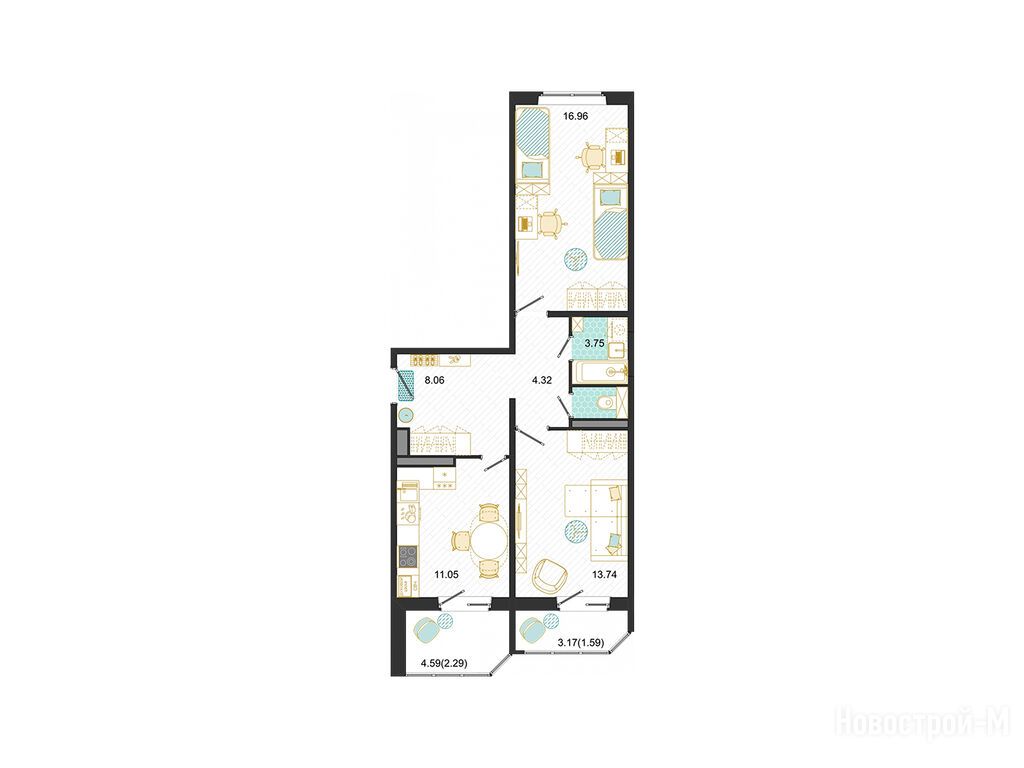 3-комн. квартира 81,60 м2 13 057 958