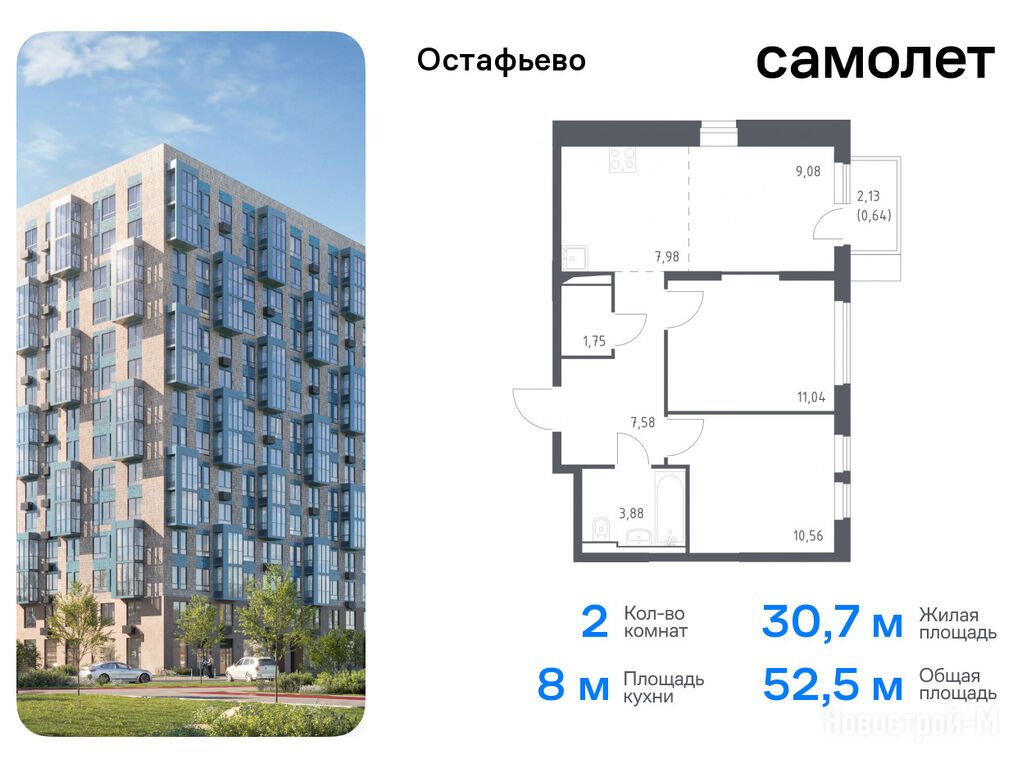 Продается двухкомнатная квартира в новостройке ЖК «Остафьево» по адресу Москва, ТиНАО, Новомосковский АО, Рязановское С/П, с Остафьево, корп. 19. Общая площадь квартиры - 52.51 кв. м. Тип проекта, по которому построен дом — Монолитно-кирпичный, компания-застройщик — Группа «Самолет», ООО СЗ «СР-Групп». Стоимость квартиры — 12 588 541 руб. Способы оплаты можно уточнить у продавца. Срок сдачи — 4 квартал 2025. Более подробная информация по телефону.