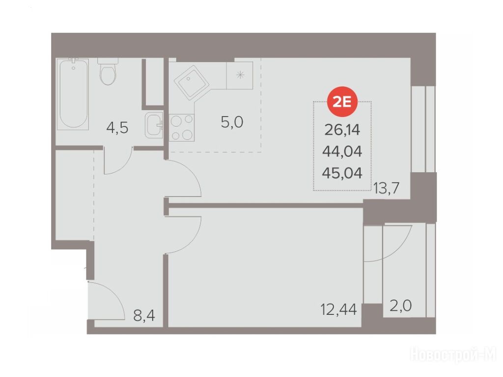 2-комн. квартира, 45.04 м2, 21 этаж