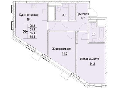 2-комн. квартира, 55.10 м2, 14 этаж