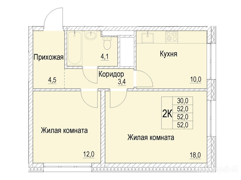2-комн. квартира, 52.00 м2, 4 этаж