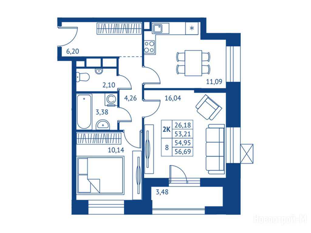 Продается двухкомнатная квартира в новостройке ЖК «Поколение Первых» по адресу Московская область, Королев городской округ, Королев, ул. Калининградская, корп. 2. Общая площадь квартиры - 53.21 кв. м. Тип проекта, по которому построен дом — Монолитно-кирпичный, компания-застройщик — Профи-Инвест, ООО СЗ Профи-Королев. Стоимость квартиры — 11 652 990 руб. Способы оплаты можно уточнить у продавца. Срок сдачи — 2 квартал 2028. Более подробная информация по телефону.