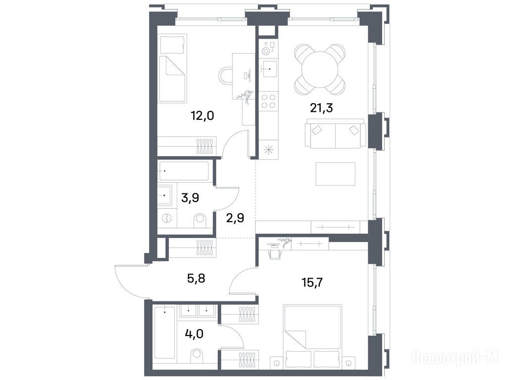 Данная квартира является лидером продаж среди двухкомнатных квартир в ЖК «Портленд. Дом на берегу» по данным Росреестра