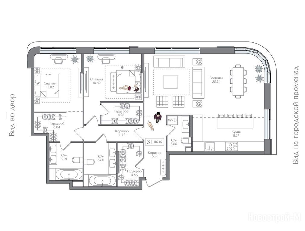 Рядом несколько парков, во дворе будет сквер с тренажерами и развлечениями для детей. Метро недалеко. Современная архитектура - тоже хорошо. Планировки продуманные, можно разместиться даже в небольших вполне комфортно