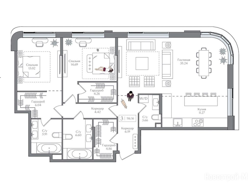 Продается двухкомнатная квартира в новостройке ЖК «Преображенская площадь» по адресу Москва, ВАО, Преображенское, ул. 1-я Бухвостова, вл.12/11. Общая площадь квартиры - 116.16 кв. м. Тип проекта, по которому построен дом — Монолитно-кирпичный, компания-застройщик — Regions Development. Стоимость квартиры — 52 854 997 руб. Способы оплаты можно уточнить у продавца. Срок сдачи — 2 квартал 2027. Более подробная информация по телефону.