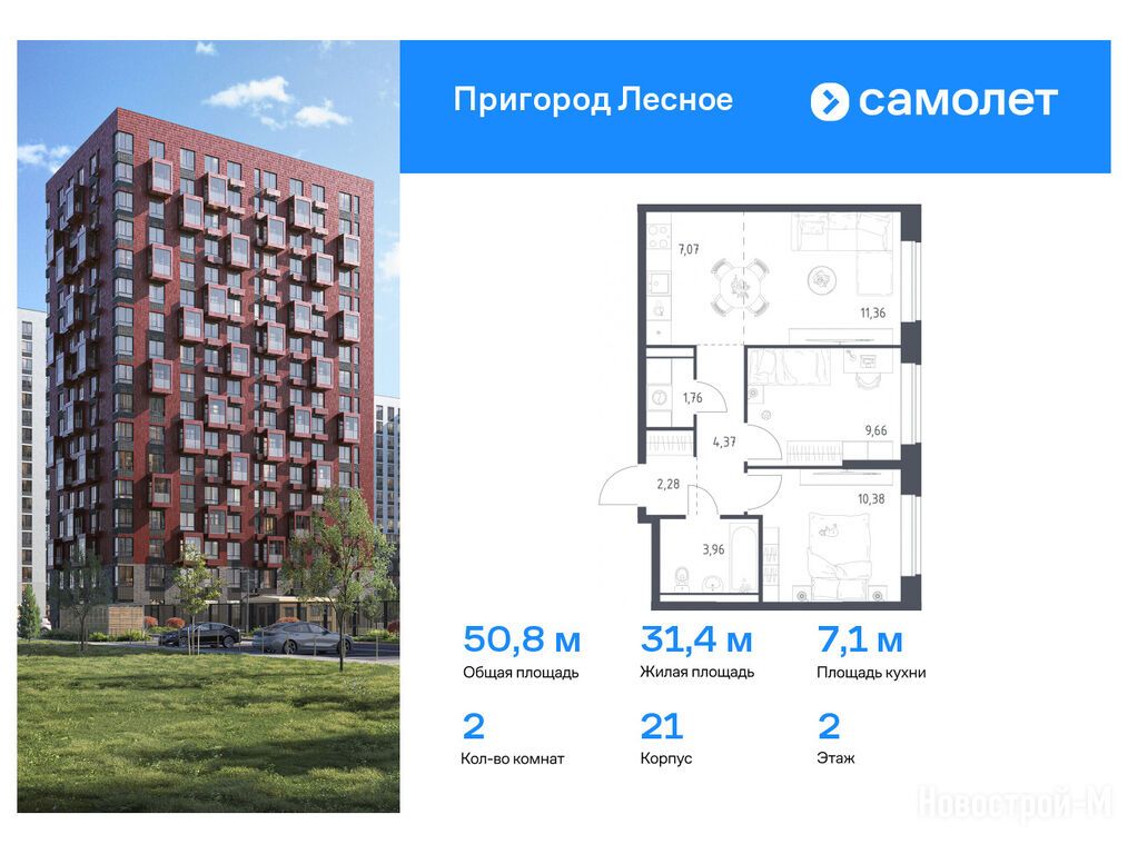 Продается двухкомнатная квартира в новостройке ЖК «Пригород Лесное» по адресу Московская область, Ленинский городской округ, Молоковское С/П, Мисайлово деревня, Жилой квартал «Пригород Лесное», корп. 21. Общая площадь квартиры - 50.84 кв. м. Тип проекта, по которому построен дом — Монолитно-кирпичный, компания-застройщик — ООО «СЗ «Пригород Лесное», Группа «Самолет». Стоимость квартиры — 9 210 073 руб. Способы оплаты можно уточнить у продавца. Более подробная информация по телефону.