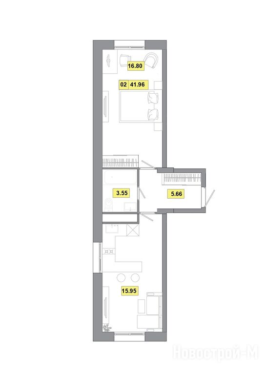 2-комн. квартира, 41.96 м2, 5 этаж