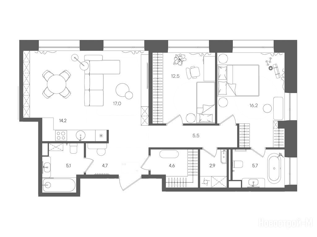 Хороший вариант за "хорошую" цену. В 3 минутах от метро, в 2 км ТТК, квартиры от небольших однушек до просторных двухуровневых, архитектура уникальная - смотрится круто, конечно