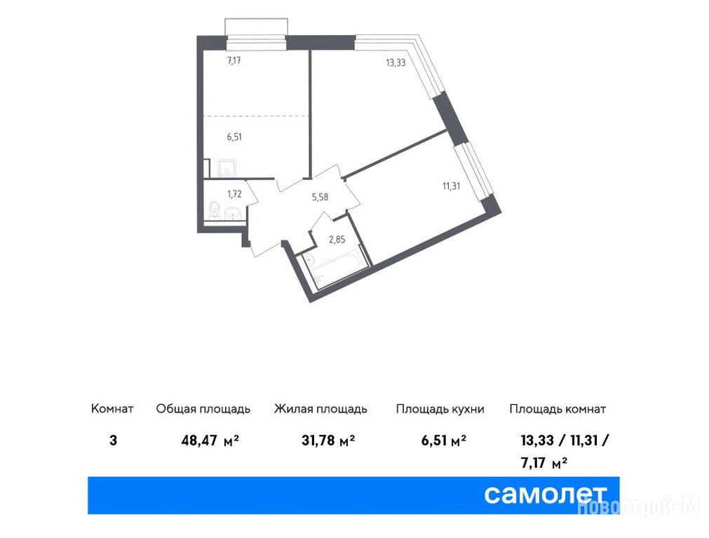 Продается двухкомнатная квартира в новостройке ЖК «Рублевский Квартал» по адресу Московская область, Одинцовский район, Горское С/П, Лайково с., ЖК «Рублевский Квартал», корп. 57. Общая площадь квартиры - 48.47 кв. м. Тип проекта, по которому построен дом — Монолитно-кирпичный, компания-застройщик — ООО СЗ «Самолет-Лайково», Группа «Самолет». Стоимость квартиры — 11 817 443 руб. Способы оплаты можно уточнить у продавца. Срок сдачи — 4 квартал 2025. Более подробная информация по телефону.